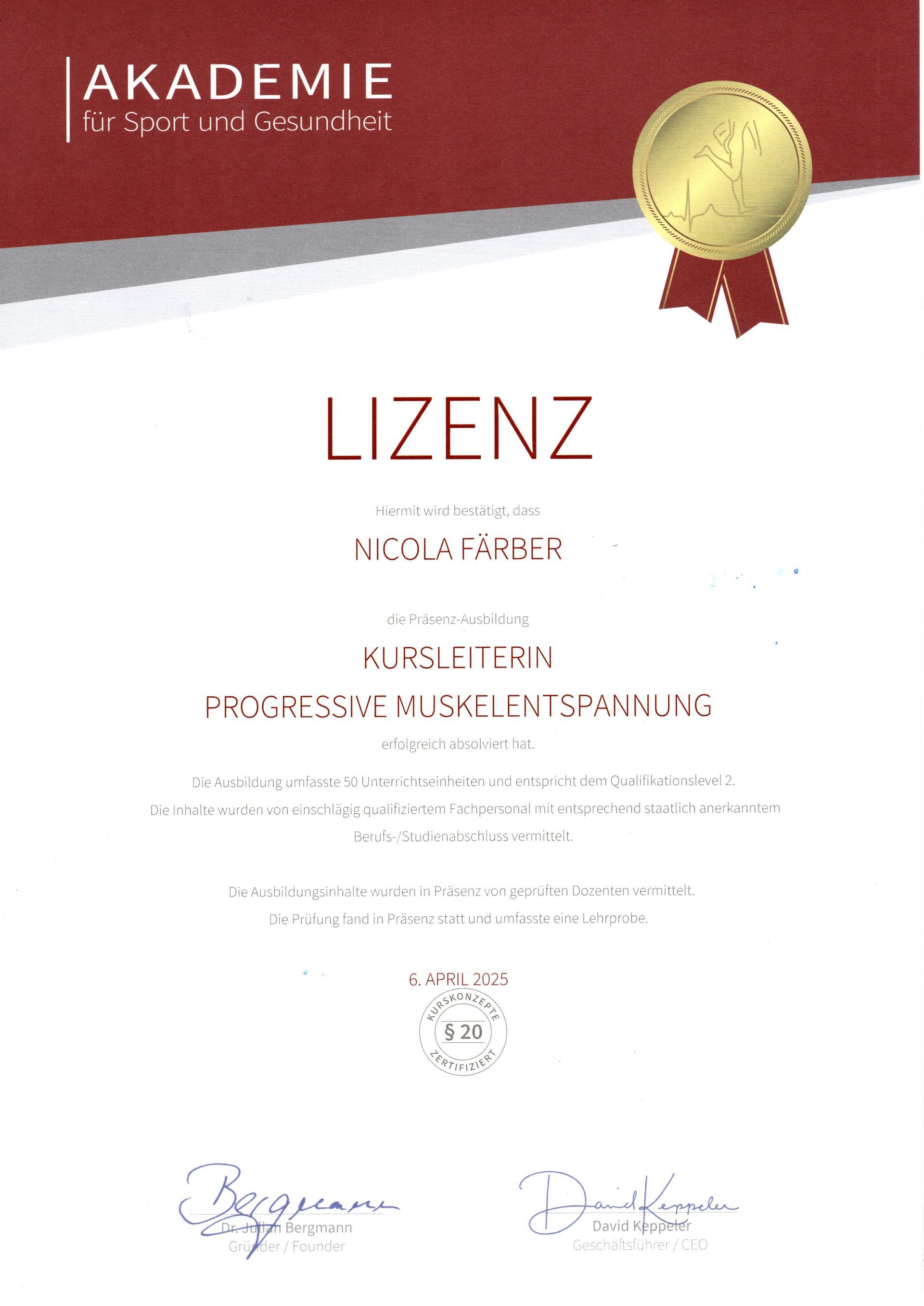 Bei der Progressiven Muskelentspannung lernt dein Körper durch gezielte An- und Entspannung einzelner Muskelgruppen bewusst ein Gefühl der Entspannung herbeizuführen. Suggestive Momente unterstützen diesen Prozess. PME wird im Liegen oder Sitzen ausgeführt, kann nach ausreichendem Training auch in wenigen Augenblicken im Alltag eingesetzt werden. In diesem Kurs üben wir Progressive Muskelentspannung nach Jacobson (1929), insbesondere die Weiterentwicklung der 16 Muskelgruppen nach Bernstein & Brokovec (1973)