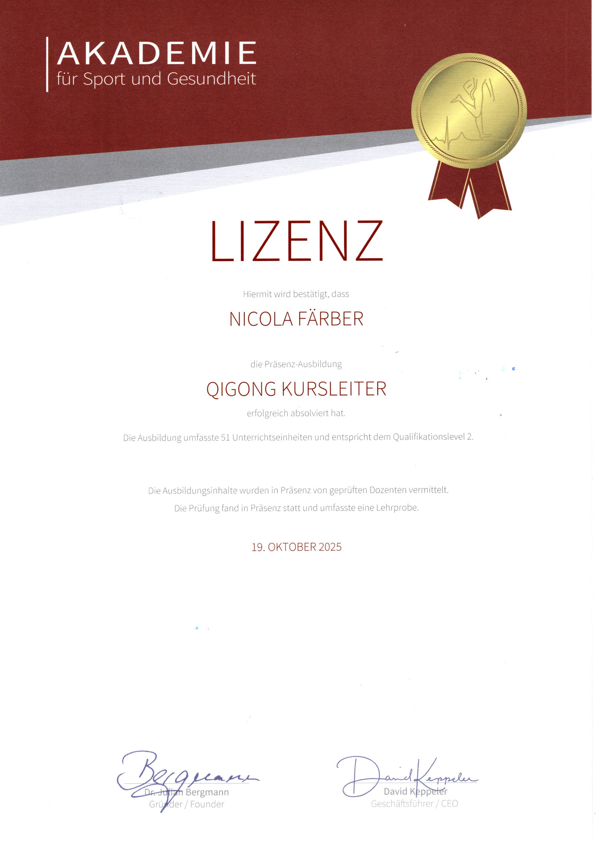 So habe ich über 30 Jahre Schülernachhilfe gegeben, über 15 Jahre als Nordic Walking Trainerin gearbeitet, seit drei Jahren gebe ich Deutschunterricht für ausländische Pflegefachkräfte bei der Sprachschule crossXculture und seit 2025 bin ich Kursleiterin für Qi Gong und Progressive Muskelentspannung (PME)